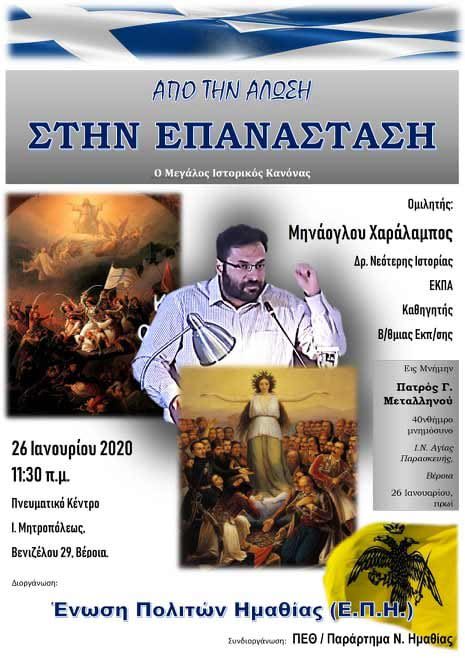 παρουσίασης είναι «ΑΠΟ ΤΗΝ ΑΛΩΣΗ ΣΤΗΝ ΕΠΑΝΑΣΤΑΣΗ. Ο Μεγάλος Ιστορικός Κανόνας».