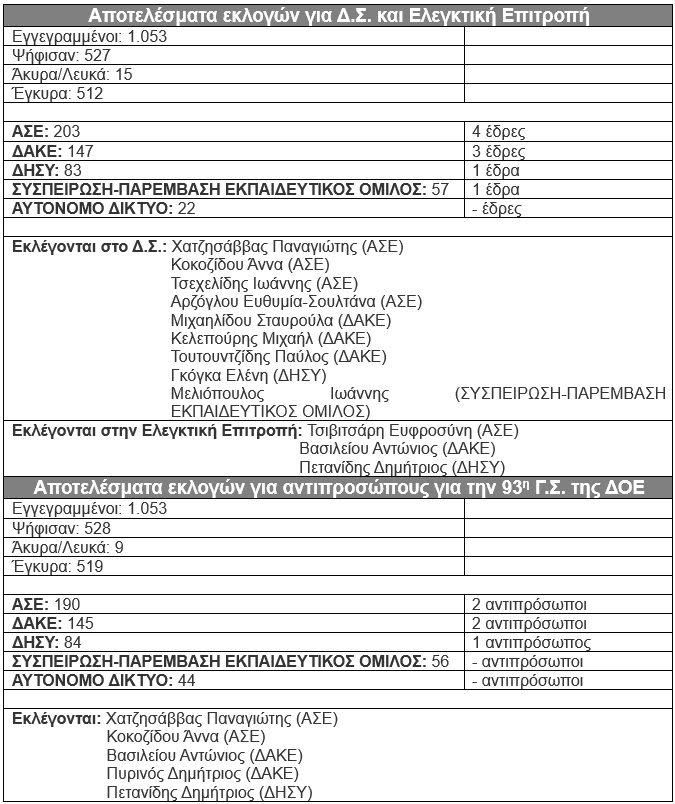 Πρωτιά της Αγωνιστικής Συσπείρωσης, με 4 έδρες, καταγράφηκε στις εκλογές του Συλλόγου Εκπαιδευτικών Πρωτοβάθμιας Εκπαίδευσης Ημαθίας για νέο ΔΣ, Ελεγκτική Επιτροπή και αντιπροσώπους στην 93η Γ.Σ. της ΔΟΕ.