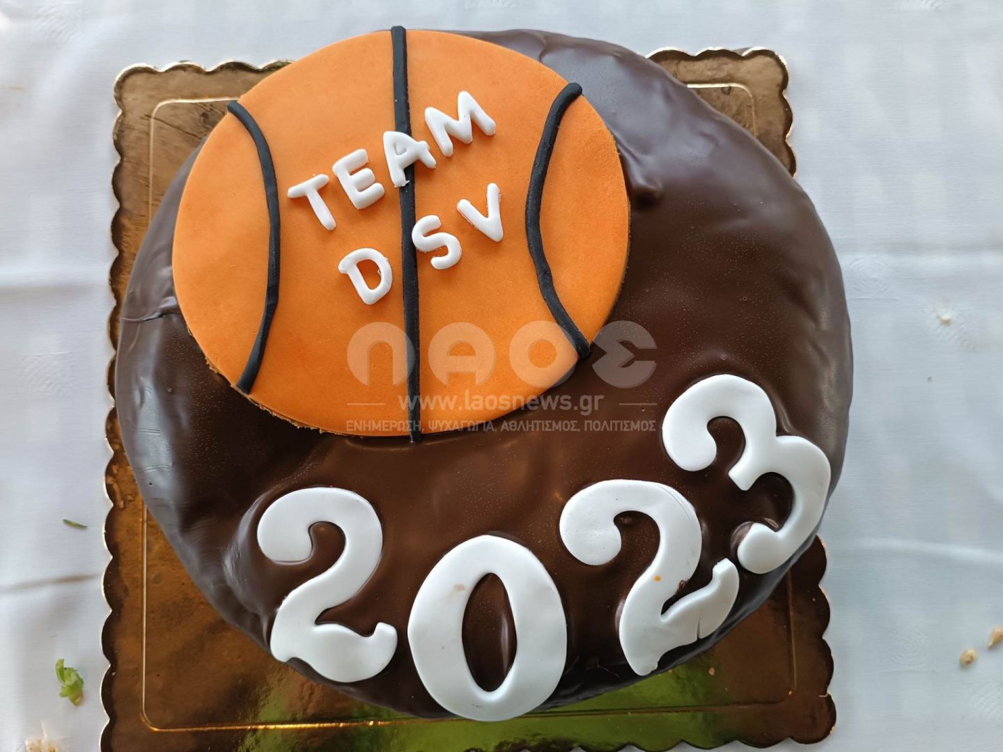 που είχε το λογότυπο της ομάδας με την μπάλα μπάσκετ έκοψε ο αρχηγός της ομάδας