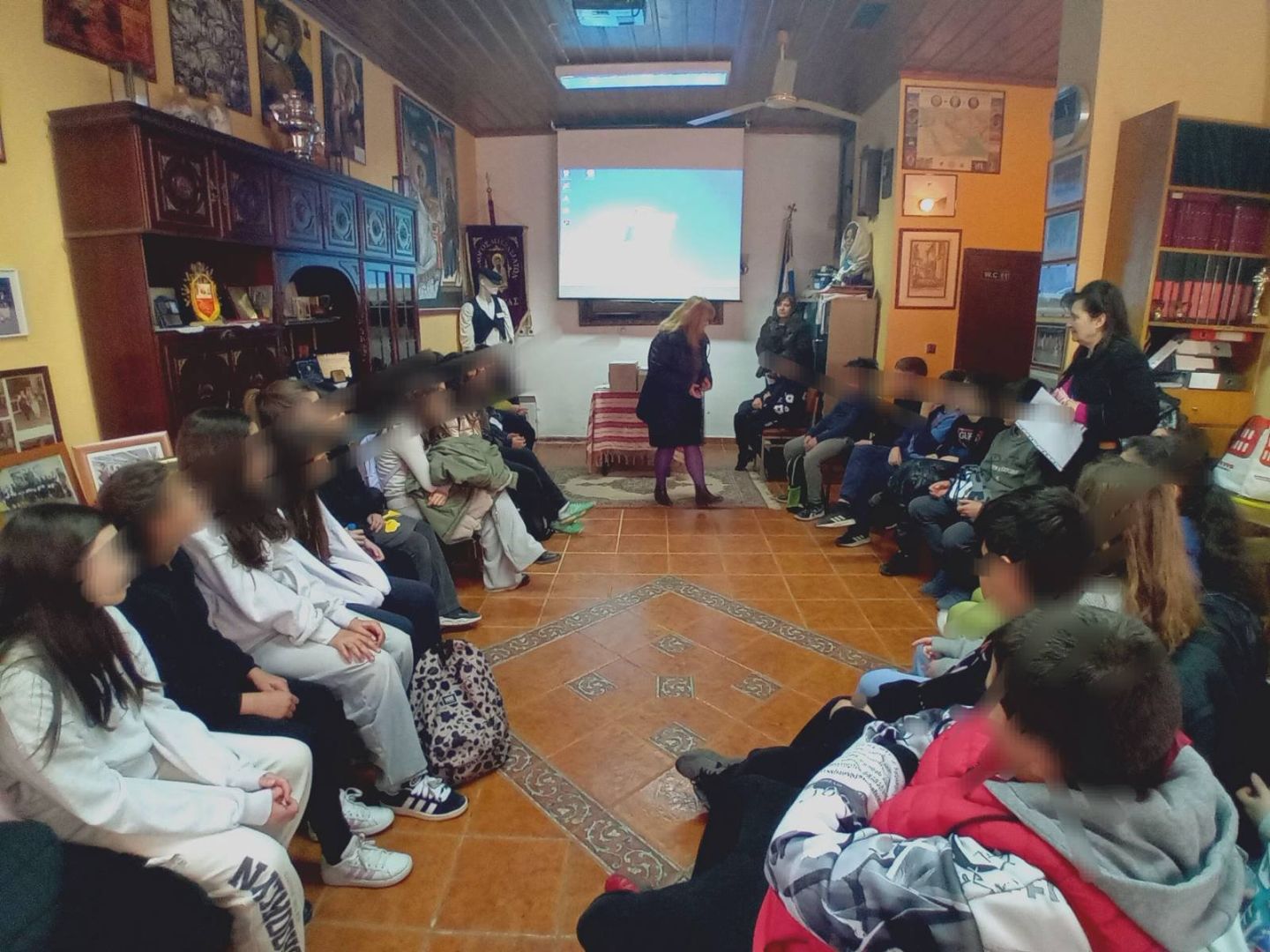 Στο Σπίτι των Μικρασιατών, οι μαθητές έτυχαν θερμής υποδοχής από την πρόεδρο του Συλλόγου, κ. Τασούλα Παυλίδου, καθώς και τα μέλη του Δ.Σ. Ξεχωριστή ήταν η αφήγηση της συνταξιούχου δασκάλας, η οποία μίλησε για την ιστορία του Μικρασιατικού Ελληνισμού, τη Μικρασιατική Καταστροφή και τις δυσκολίες που αντιμετώπισαν οι πρόσφυγες κατά την έλευσή τους στην Ελλάδα. Οι μαθητές συμμετείχαν σε ένα διαδραστικό παιχνίδι, ενώ είχαν την ευκαιρία να δουν από κοντά αυθεντικά αντικείμενα όπως ρούχα, υφαντά, φορεσιές, σκεύη καθημερινής χρήσης και εικόνες. Η εμπειρία αυτή ολοκληρώθηκε με τους μαθητές να χορεύουν ένα παραδοσιακό μικρασιάτικο τραγούδι υπό την καθοδήγηση της κ. Τασούλας.