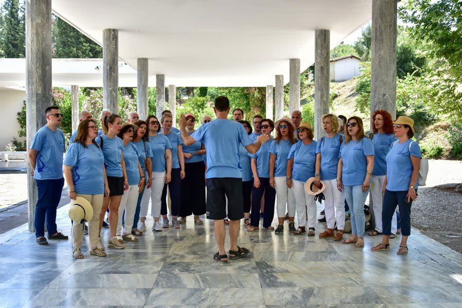 Προσκεκλημένη από την Μικτή χορωδία Πύργου, η χορωδία και η μαντολινάτα του Μουσικού Σωματείου “Ωδείο Ναούσης” συμμετείχε στο φεστιβάλ χορωδιών που πραγματοποιήθηκε στο μουσείο ιστορίας των αρχαίων ολυμπιακών αγώνων στην Αρχαία Ολυμπία.