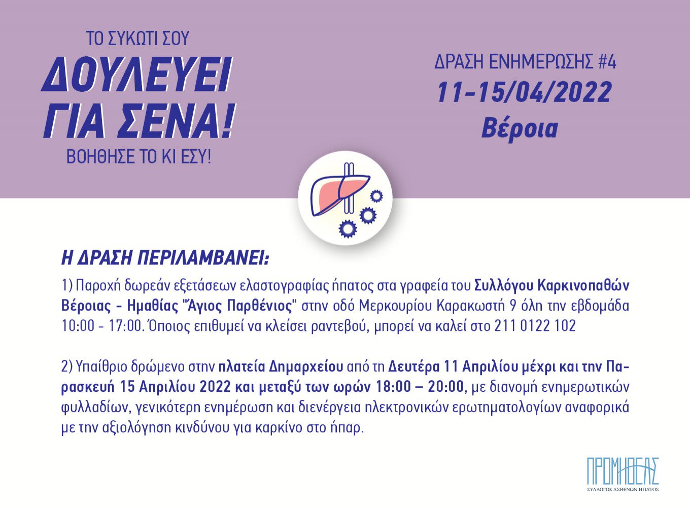 Εκστρατεία ενημέρωσης & ευαισθητοποίησης για τον Καρκίνο του Ήπατος “Δουλεύει για Σένα”στην Βέροια – Από τις 11 ως και τις 15 Απριλίου 2022