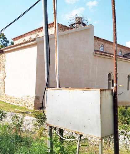 Αναγνώστες μας κατήγγειλαν ότι πίσω από την Παλιά Μητρόπολη και συγκεκριμένα στο μικρό παρκάκι, όπου βρίσκεται και η προτομή του ιερομάρτυρα Μητροπολίτη Βεροίας Αρσενίου, υπάρχει ένα παλιό(το υποθέτουμε λόγω σκουριάς) μεταλλικό κουτί όπου βρίσκονται ρολόι της ΔΕΗ και ηλεκτρολογικός πίνακας, ενώ καλώδια κατεβαίνουν από τον στύλο της ΔΕΗ, ενώ άλλα αιωρούνται σε σχετικά χαμηλό ύψος.