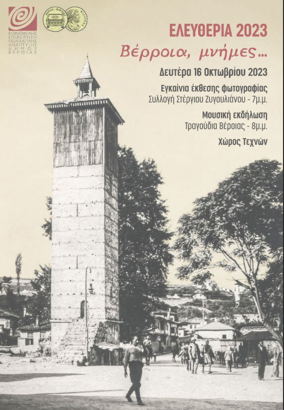 Στο πλαίσιο εορτασμού των Ελευθέριων του Δήμου Βέροιας η ΚΕΠΑ Δ. Βέροιας παρουσιάζει την Δευτέρα 16 Οκτωβρίου 2023 δύο εκδηλώσεις μνήμης, με τίτλο Βέρροια, μνήμες…