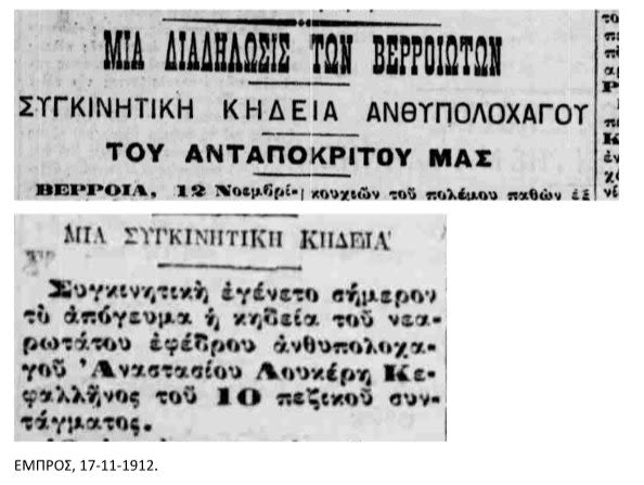 Ανάσταση της 16ης Οκτωβρίου 1912[1] η γη της Βέροιας αγκάλιαζε και παρέδιδε στην αιωνιότητα έναν από τους