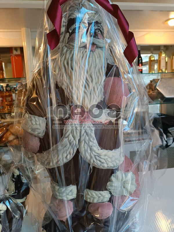 Δεν είναι δυνατό να επισκεφθεί κάποιος το ζαχαροπλαστείο ΕΛΥΖΕ, της οικογένειας Φλώρου επί της οδού Θερμοπυλών στη Βέροια και να μην πέσει το μάτι στον μεγάλο σοκολατένιο Αϊ-Βασίλη. Πρόκειται για ένα εντυπωσιακό ζαχαροπλαστικό δημιούργημα, που όπως μας ενημέρωσε ο ιδιοκτήτης του ΕΛΥΖΕ Ζώης Φλώρος, έχει βάρος περίπου 14 κιλά και ύψος σχεδόν ένα μέτρο!!! Είναι φτιαγμένος από πραγματική σοκολάτα υψηλής ποιότητας και εκτός από εντυπωσιακό ντεκόρ για όποιον τον αγοράσει μπορεί να χορτάσει με σοκολάτα πάρα πολλά άτομα. Όσο βρίσκεται ακόμη προς διάθεση σπεύσατε, αν όχι να τον αγοράσετε, τουλάχιστον να τον θαυμάσετε και να γευτείτε τους εξίσου ποιοτικούς Αϊ-Βασίληδες που βρίσκονται δίπλα του, αλλά με μικρότερο ύψος και βάρος και ίσως πιο κοντά στα μέτρα της τσέπης σας!