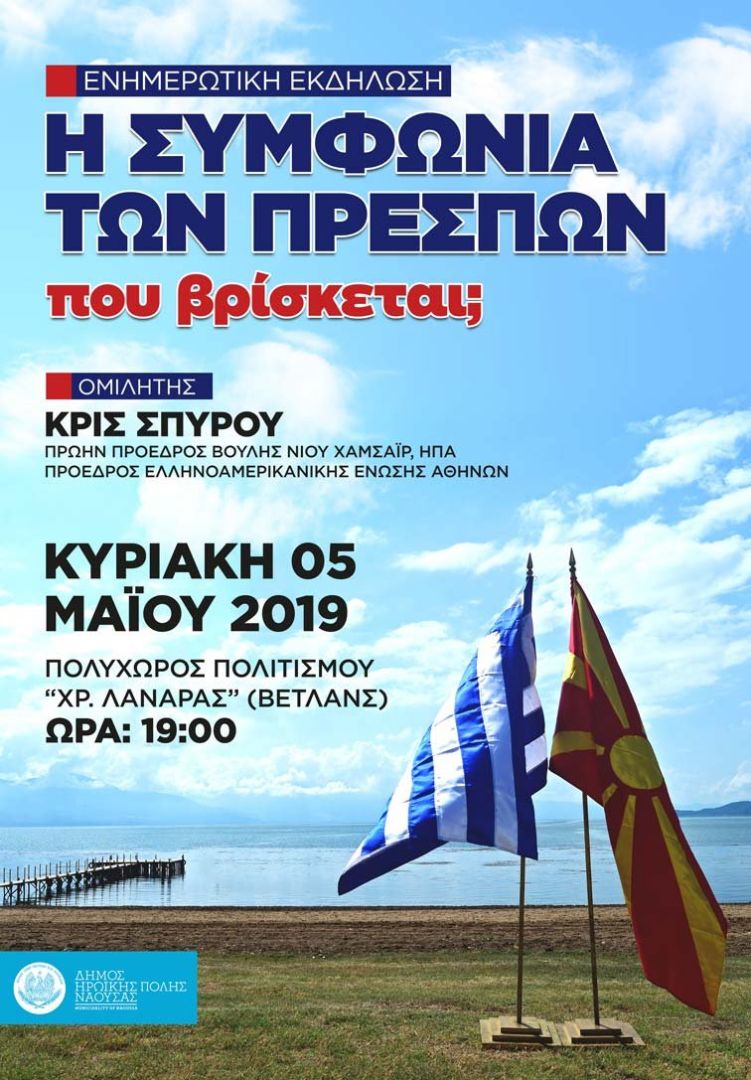 με την συμφωνία των Πρεσπών η οποία θα πραγματοποιηθεί την Κυριακή 5 Μάϊου 2019