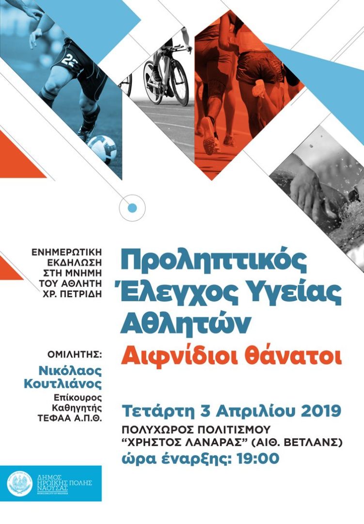 Ενημερωτική εκδήλωση με θέμα ‘Προληπτικός Έλεγχος Υγείας Αθλητών – Αιφνίδιοι θάνατοι’ στη Νάουσα