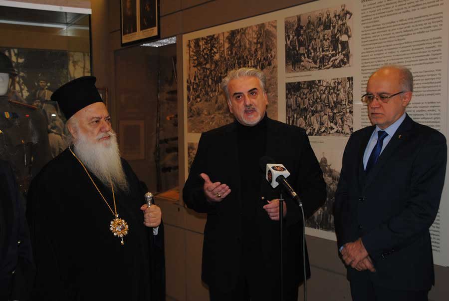 Ο Μητροπολίτης κ. Παντελεήμων αρχικά έκανε ανασκόπηση στην ιστορία του Μουσείου και της δωρεάς του κτιρίου από την οικογένεια Βλαχογιάννη στη Μητρόπολη για να γίνει Μουσείο Μακεδονικού Αγώνα και το πως έφτασαν στο να φιλοξενηθεί η συλλογή στρατιωτικού υλικού του Κανέλλου Ντόντου στον συγκεκριμένο χώρο. Αναφερόμενος στο κ. Ντόντο, αλλά και απαντώντας σε ερωτήσεις σχετικά με τον θόρυβο που είχε προκληθεί το περασμένο καλοκαίρι, με καταγγελίες για εκθέματα της συλλογής με διχαστικά μηνύματα και αναφορές για τον εμφύλιο, (οπότε και ανακοινώθηκε ότι το Μουσείο αναστέλλει τη λειτουργία του), ο κ. Παντελεήμων χθες παρείχε την στήριξη του στο πρόσωπο του συλλέκτη, τον οποίο και συνεχάρη για την εξαιρετική συλλογή του.