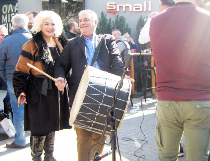 Κάποιοι όμως έπιασαν και τα νταούλια, όπως ο Θεόφιλος Τεληγιαννίδης, στο κέντρο του εμπορικού πεζόδρομου, που του έδωσε και κατάλαβε του οργάνου, με πολύ κέφι!