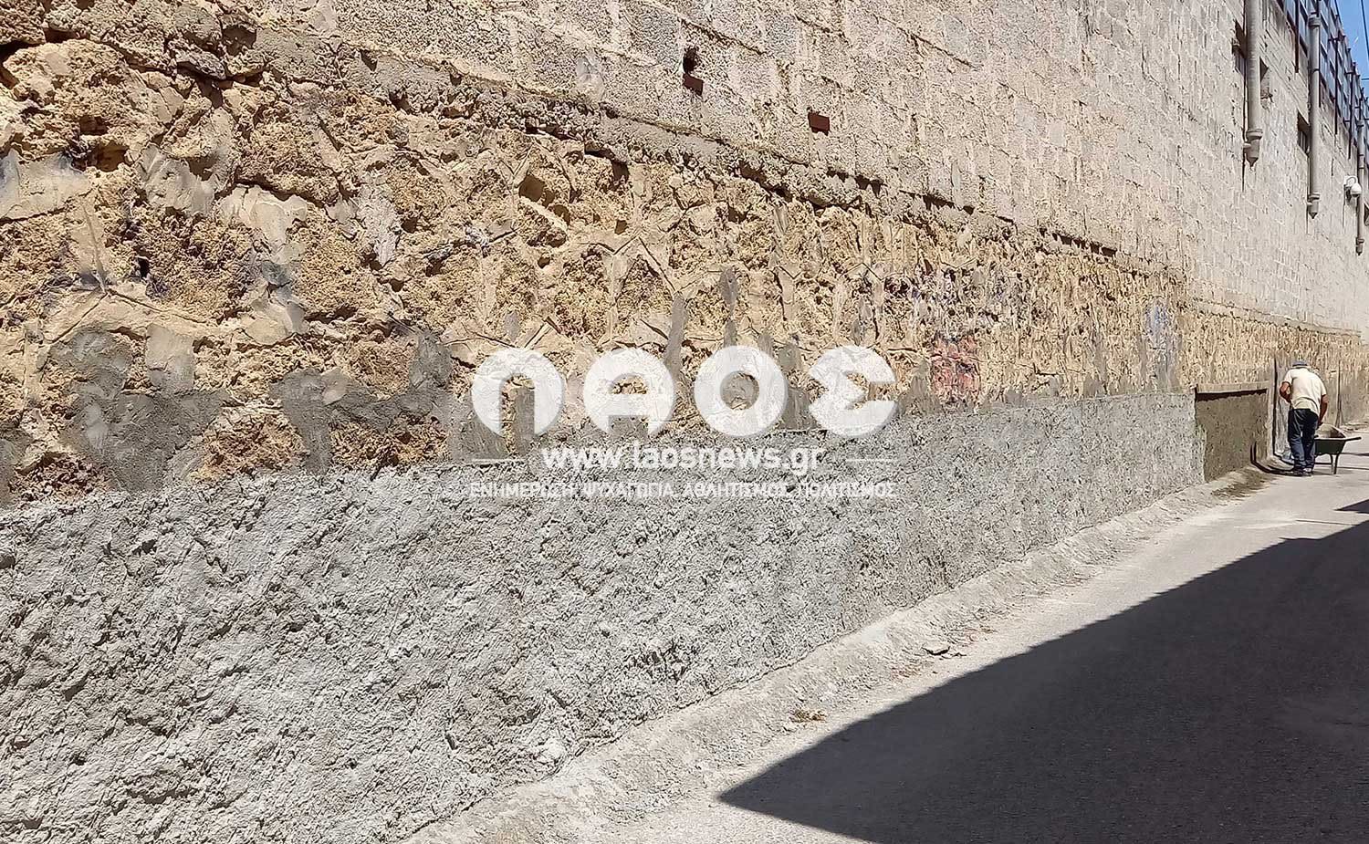 Το θετικό είναι ότι δεν έγινε μια ακόμη μικρή παρέμβαση σε κάποια σημεία του τοιχίου, όπως στο παρελθόν, αλλά πραγματοποιείται με εκτεταμένη συντήρηση.