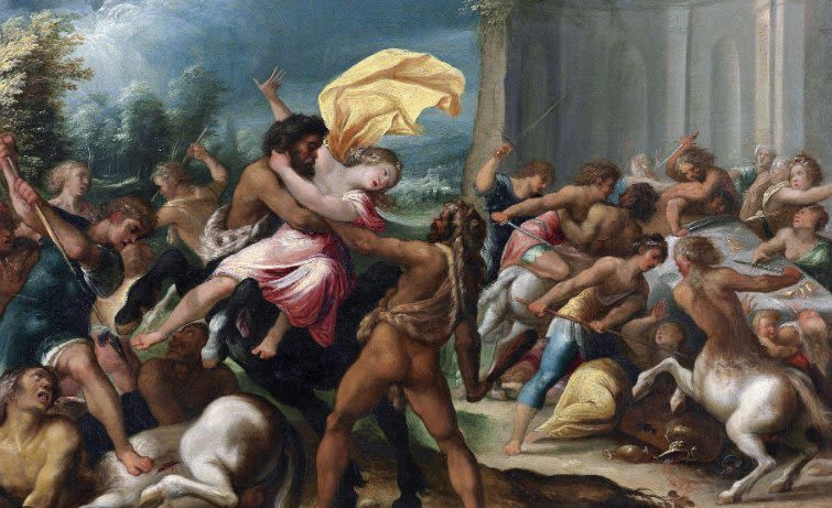 Η Κενταυρομαχία λεγόταν ότι έγινε εξαιτίας της συμπεριφοράς του Κένταυρου Ευρυτίωνα, ο οποίος, ενώ ήταν προσκεκλημένος στους γάμους του Πειρίθου και της Ιπποδάμειας, όταν μέθυσε, θέλησε να κάνει ερωμένη του τη νεόνυμφη.