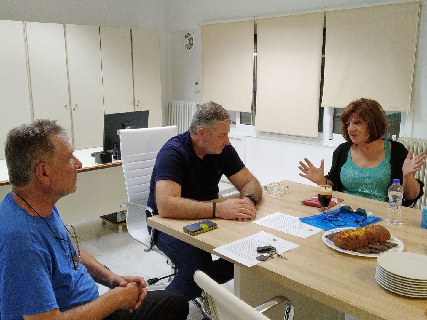 Στη Νάουσα συνομίλησε με τους προέδρους του Α.Σ.Ν. και του ΑΣΕΠΟΠ Νάουσας κ.κ. Κων/νο Ταμπακιάρη και Αντώνιο Πασχούλα και στη Βέροια με τους προέδρους των συνεταιρισμών ΑΣ Άμμου “Ν. Αλιάκμων”, ΑΣ Μέσης και ΑΣ Νέος Απόλλων Κουλούρας κ.κ. Βασίλειο Γαλάνη, Ιορδάνη Κυρατλίδη και Γεώργιο Νεστορόπουλο αντίστοιχα.