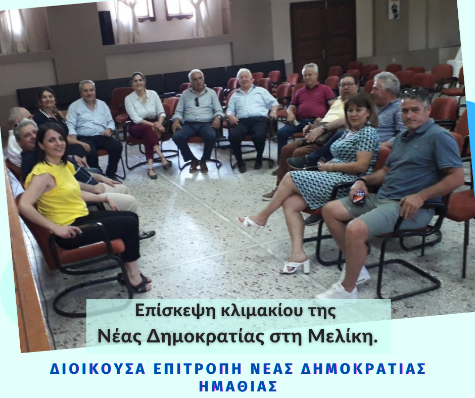 Συνεχίζοντας τις επισκέψεις που πραγματοποιεί η Διοικούσα Επιτροπή και οι Τοπικές Οργανώσεις της Νέας Δημοκρατίας σε περιοχές της Ημαθίας, την Πέμπτη 2 Ιουνίου επισκέφτηκε τη Δημοτική Ενότητα Μελίκης του Δήμου Αλεξάνδρειας, με στόχο την επικοινωνία με φορείς, επιχειρήσεις και κατοίκους του τόπου.