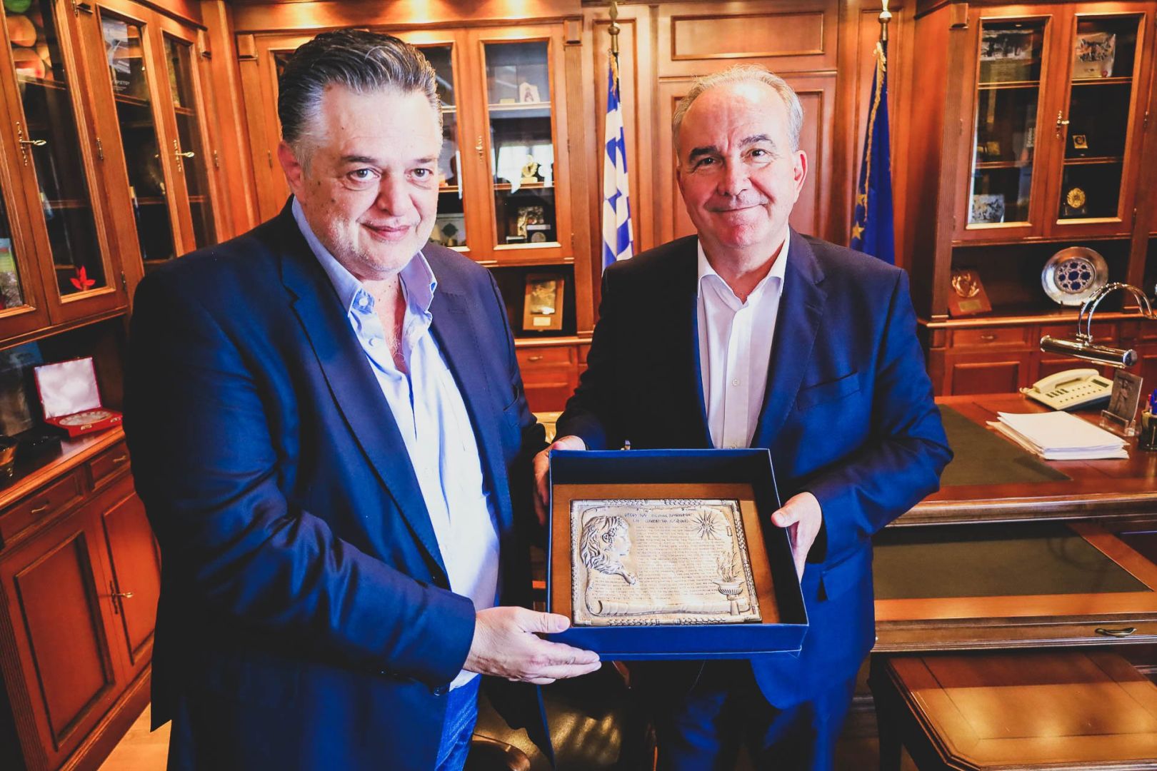 Τον αναπληρωτή Υπουργό Εθνικής Οικονομίας κ.Νίκο Παπαθανάση υποδέχτηκε το μεσημέρι της Πέμπτης 23 Μαΐου 2024, ο πρόεδρος του Επιμελητηρίου Ημαθίας κ.Γιώργος Μπίκας.