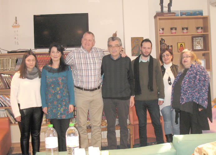 Ακολούθως ο κ. Newlin ξεναγήθηκε στους Βασιλικούς Τάφους της Βεργίνας, πέρασε από το FRONT και αφού επισκέφτηκε το Κέντρο Ημερήσιας Φροντίδας, όπου τον υποδέχθηκε ο Κοινωνικός Λειτουργός κ. Μιλτιάδης Μελιόπουλος και οι Παιδαγωγοί της Δομής, κατέληξε στο Κέντρο Αναφοράς, παροχής συμβουλευτικής και Θεραπείας Τραύματος. Εκεί έγινε ενημέρωση των Υπεύθυνων κάθε Δομής (της κ. Δώρας Νιώπα του Κέντρου Τραύματος, της κ. Ελίζας Καραβασίλη του Σπιτιού της Βεργίνας, της κ. Μαρίας Σκουρού του Κέντρου Ημερήσιας Φροντίδας και της κ. Καλλιόπης Μπασιούρη της Στέγης Ημιαυτόνομης Διαβίωσης Νέων. Παρόντες ήταν επίσης ο Πρόεδρος του ΔΣ, ο Αντιπρόεδρος κ. Νίκος Καρατόλιος και η Επιστημονικά Υπεύθυνη του Οργανισμού Παιδοψυχίατρος κ. Μαρία Δραμιλαράκη καθώς και η Ψυχολόγος του Κέντρου κ. Μαρία Πανταζή. Ο κ. Newlin αναφέρθηκε ακόμα στις συνθήκες διεξαγωγής της δικανικής συνέντευξης με παιδιά-θύματα σεξουαλικής κακοποίησης, καθώς και σε άλλα ζητήματα μεγάλου ενδιαφέροντος.