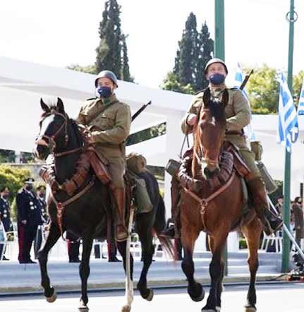 Τα άλογα στην παρέλαση της 25ης Μαρτίου δεν ήταν ιδιοκτησίας του Στρατού, αλλά προέρχονταν από διάφορους ιππικούς ομίλους. Οι αναβάτες, αυτοί με τις παραδοσιακές στολές και τις σημαίες επίσης προέρχονταν οι περισσότεροι από ιππικούς ομίλους.