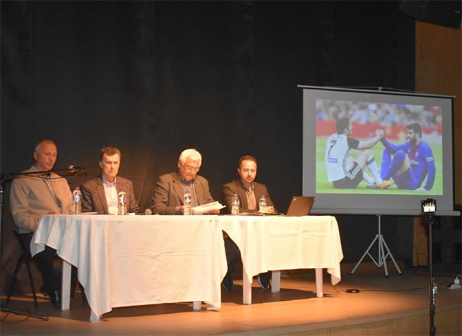 Ομιλητές ήταν οι παλαίμαχοι ποδοσφαιριστές Κώστας Ορφανός, Γιάννης Βένος και Τάκης Φωστηρόπουλος που μίλησαν για τις εμπειρίες τους μέσα από την ενασχόληση τους με το ποδόσφαιρο επαγγελματικά και τις εικόνες που συνάντησαν και συνεχίζουν να βλέπουν ακόμη και σήμερα και έχει να κάνει με όσα προσφέρει ο αθλητισμός στους νέους ανθρώπους.