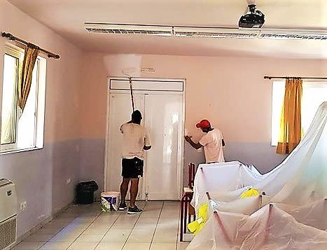 β) παρεμβάσεις τόσο εσωτερικά όσο και στον περιβάλλοντα χώρο των εκάστοτε κτιρίων (επιχρίσματα, τοιχοποιίες, επισκευές ρωγμών, επαναχρωματισμός κτιρίων κ.α.).