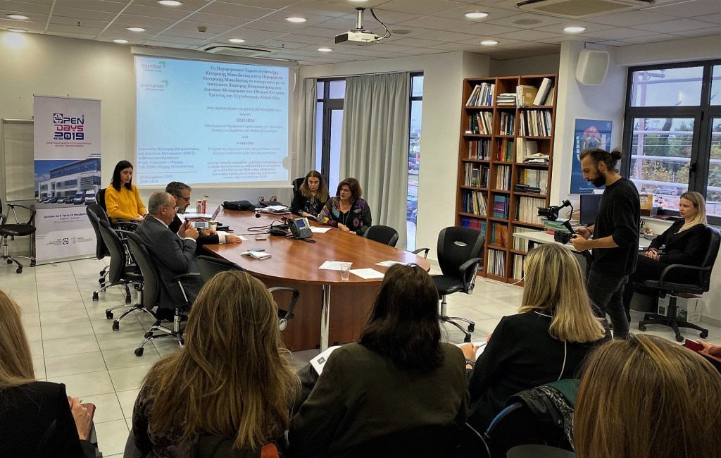 Στη συνάντηση, στην οποία συμμετείχε και ο Αντιπεριφερειάρχης Υποδομών και Δικτύων της Περιφέρειας Κεντρικής Μακεδονίας, κος Π. Μπίλλιας, παρουσιάστηκαν το πρόγραμμα REFORM και το σχέδιο δράσης της ΠΚΜ για τα ΣΒΑΚ, το κέντρο Υποστήριξης ΣΒΑΚ, όπως και το έργο e-Smartec.