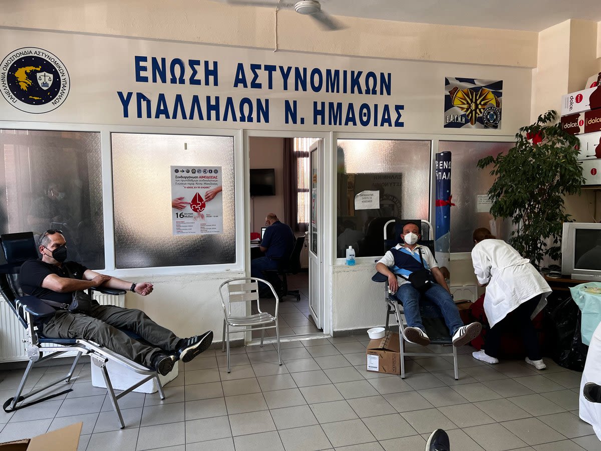 Πέρα από κάθε προσδοκία, προσήλθαν αστυνομικοί και πολίτες να ενισχύσουν την τράπεζα αίματος της Ε.Α.Υ.Ν.Η., καθώς επίσης και να δηλώσουν εθελοντές δότες μυελού των οστών στο σύλλογο του Νομού Ημαθίας.