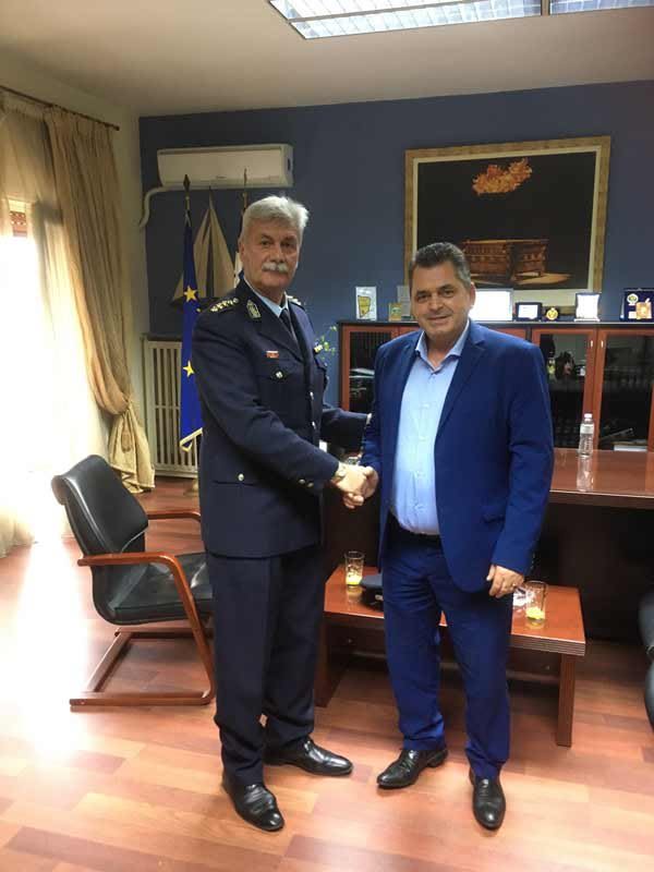 Σήμερα (01-11-2019) το πρωί, πραγματοποιήθηκε εθιμοτυπική επίσκεψη στον Αντιπεριφερειάρχη Π.Ε. Ημαθίας κ. Κωνσταντίνο Καλαϊτζίδη από τον Διευθυντή της Διεύθυνσης Αστυνομίας Ημαθίας, Αστυνομικό Διευθυντή Διονύσιο Κούγκα, συνοδευόμενο από την Υπασπιστή του, Υπαστυνόμο Α’ Πελαγία Αγγέλου, όπου του εξέφρασε τα συγχαρητήρια για την επανεκλογή του και του ευχήθηκε καλή συνέχεια στα καθήκοντά του.