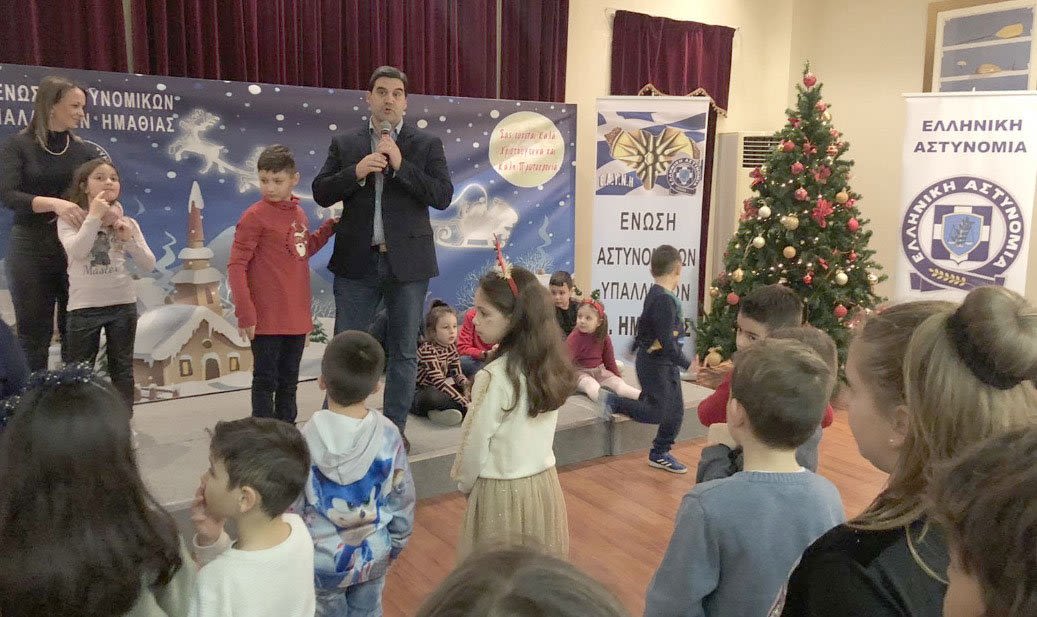 «Σε μια κατάμεστη από συναδέλφους αίθουσα , πραγματοποιήθηκε με μεγάλη επιτυχία η ετήσια χριστουγεννιάτικη εκδήλωση για τα παιδιά των αστυνομικών της Διεύθυνσης Αστυνομίας Ημαθίας! Ως Πρωτοστάτης στη διοργάνωση και Μέγας χορηγός της εκδήλωσης όπως πάντα η Ένωση μας, συνεπικουρούμενη από την Ένωση αστυνομικών Συνοριακής Φύλαξης Ημαθίας καθώς και την Ένωση Αξιωματικών Κεντρικής Μακεδονίας , δια του προέδρου μας κ Μούρτη Αποστόλου ευχήθηκε στους μικρούς μας φίλους χρόνια πολλά και καλά Χριστούγεννα!