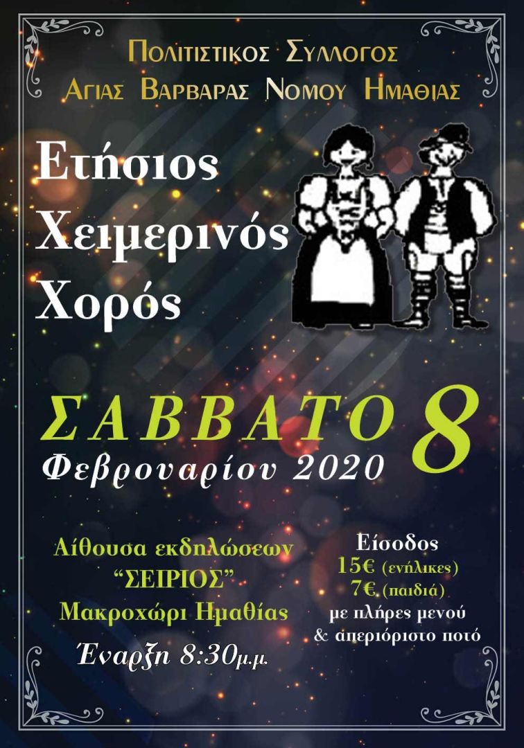 προσκαλούν στον Ετήσιο χειμερινό χορό του συλλόγου μας, στις 8 Φεβρουαρίου 2020