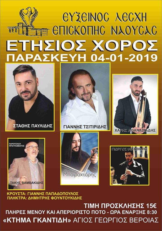 Ιανουαρίου 2019, στις 8:30 μ.μ. στο Κτήμα Γκαντίδη ( Άγιος Γεώργιος Βέροιας ).
