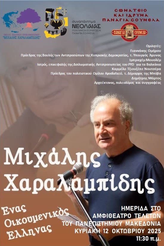 Η Εύξεινος Λέσχη Ποντίων Νάουσας πρόκειται να ναυλώσει λεωφορείο για την ημερίδα που διοργανώνουν το Σωματείο και το Ίδρυμα «Παναγία Σουμελά», σε συνεργασία με τον Όμιλο Πολιτικού Προβληματισμού «Μιχάλης Χαραλαμπίδης» και την Οργανωτική Επιτροπή Συναπαντήματος Ποντιακής Νεολαίας, την Κυριακή 12 Οκτωβρίου 2025, στις 11:30 π.μ., στο αμφιθέατρο της αίθουσας τελετών του Πανεπιστημίου Μακεδονίας στην Θεσσαλονίκη.