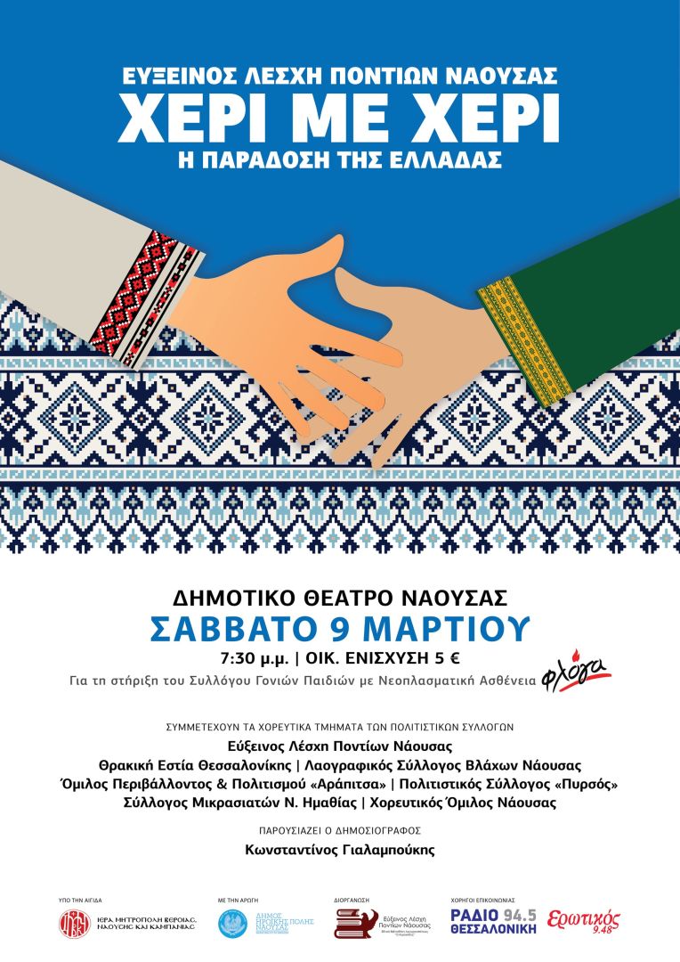 μουσικοχορευτική παράσταση, φιλανθρωπικού χαρακτήρα, με τίτλο «ΧΕΡΙ ΜΕ ΧΕΡΙ, η