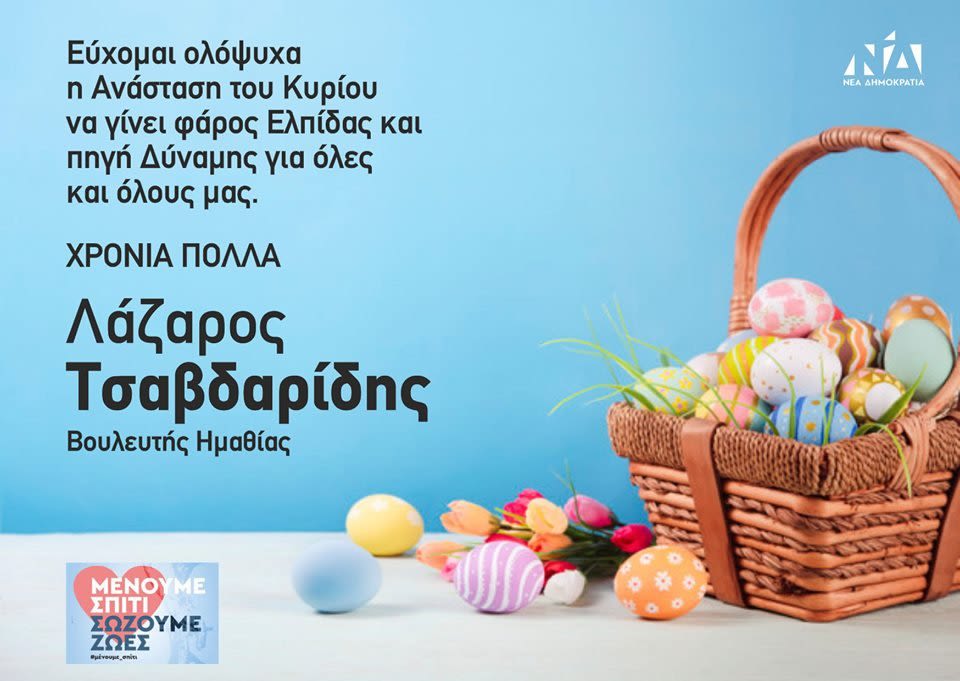 Ευχές από τον ΑΝ. ΓΕΝ. ΓΡΑΜΜΑΤΕΑ ΚΟ της ΝΔ και βουλευτή Ημαθίας Λάζαρο Τσαβδαρίδη