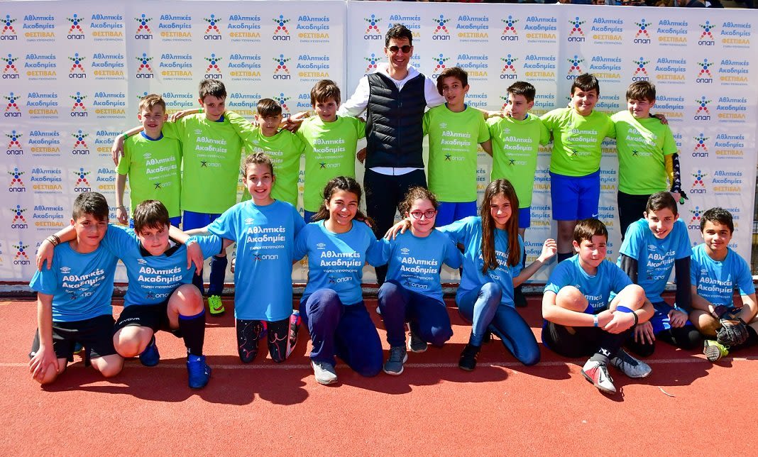 Ο Σάκης Ρουβάς με παιδιά από το πρόγραμμα Αθλητικές Ακαδημίες ΟΠΑΠ