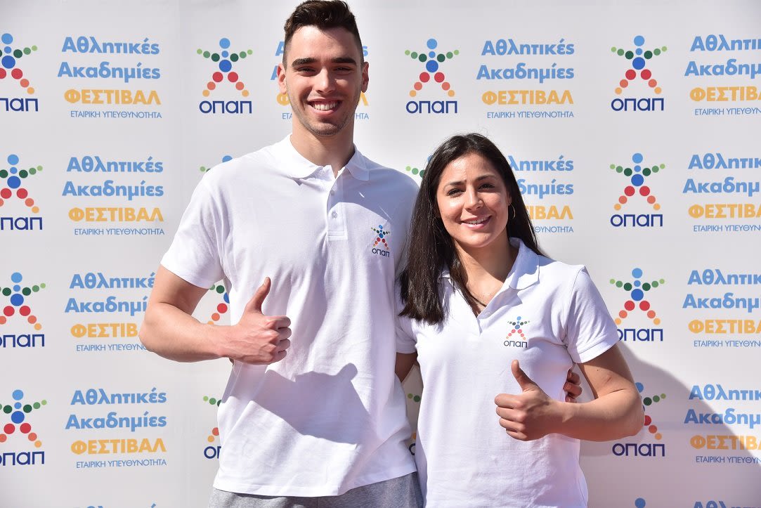 Απόστολος Χρήστου πρωταθλητής κολύμβησης και Δέσποινα Γεωργιάδου πρωταθλήτρια ξιφασκίας, μέλη του προγράμματος ΟΠΑΠ Champions