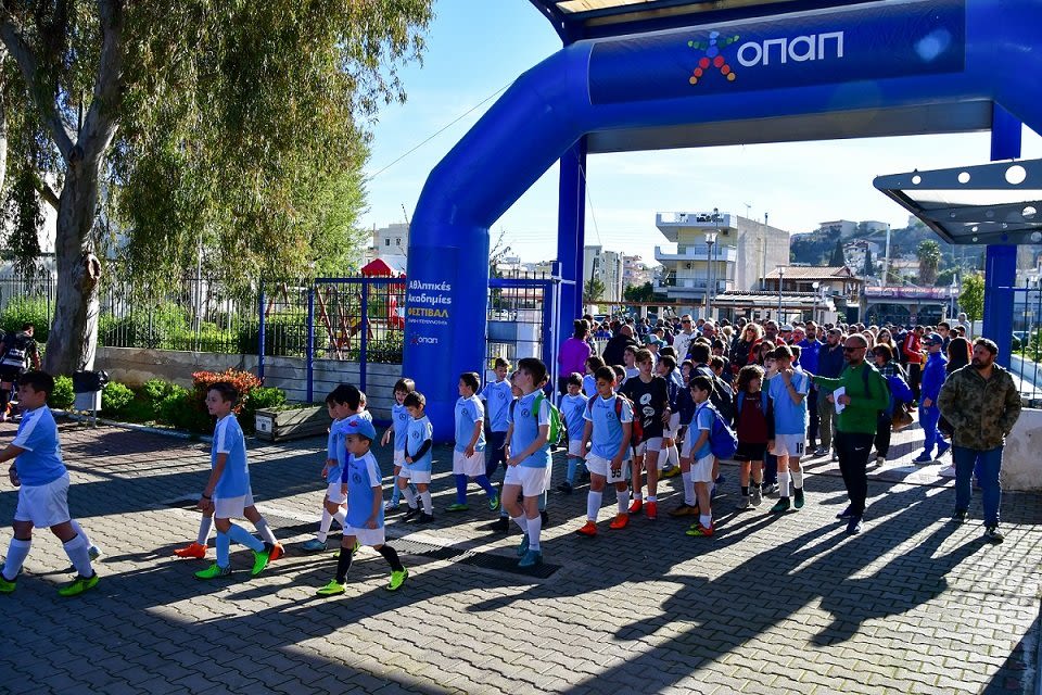 Είσοδος των παιδιών στο φεστιβάλ των Αθλητικών Ακαδημιών ΟΠΑΠ