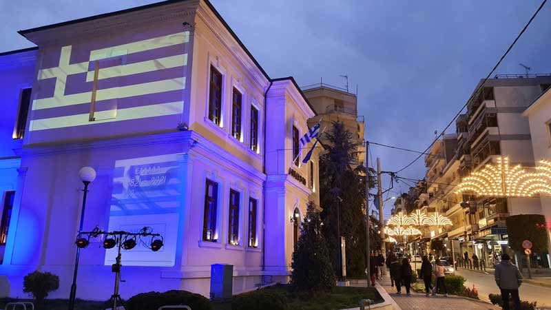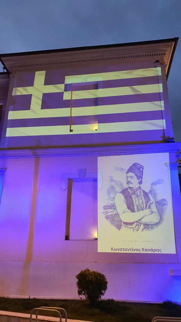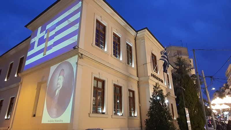 φωτισμό που μετατρέπει τον τοίχο του Δημαρχείου σε ελληνική σημαία συνοδεύει