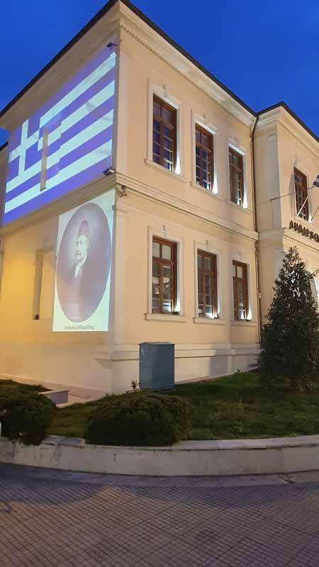 χρώματα της Ελληνικής σημαίας, το λευκό και το κυανό, ντύθηκε το κτίριο του