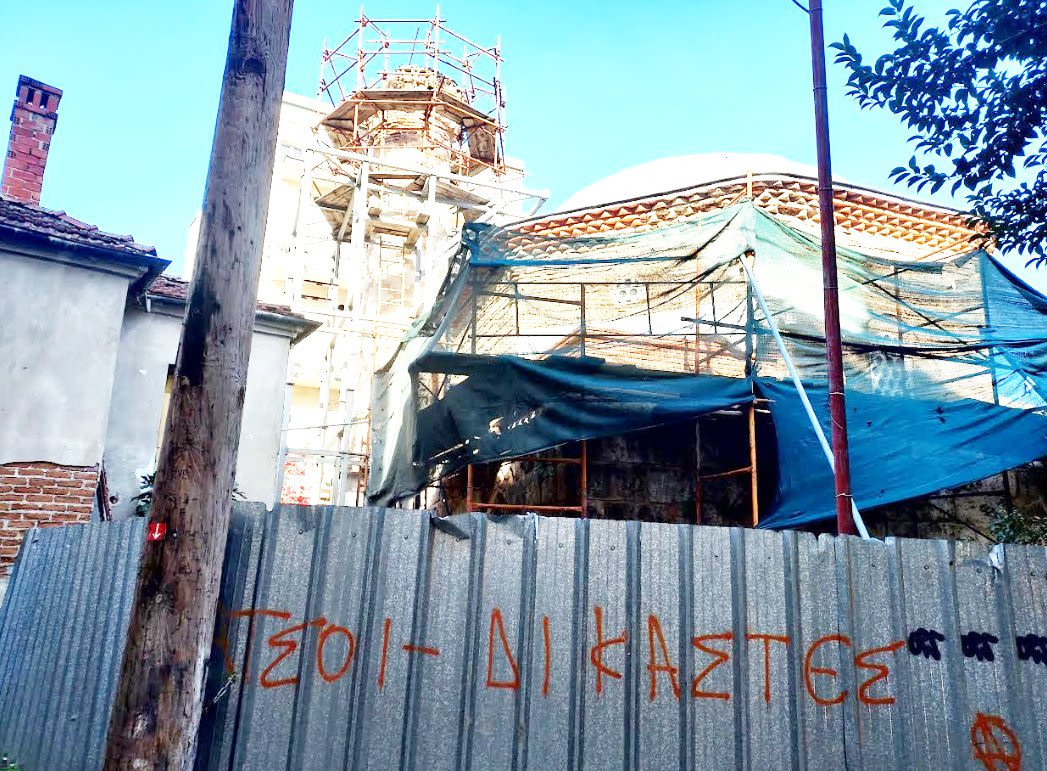 Δυστυχώς οι εξωτερικοί τοίχοι του τζαμιού και ο πέριξ χώρος άρχισε να χορταριάζει, απογοητεύοντας όλους όσους αναμέναμε το σημαντικό έργο να έχει ήδη παραδοθεί στην πόλη.