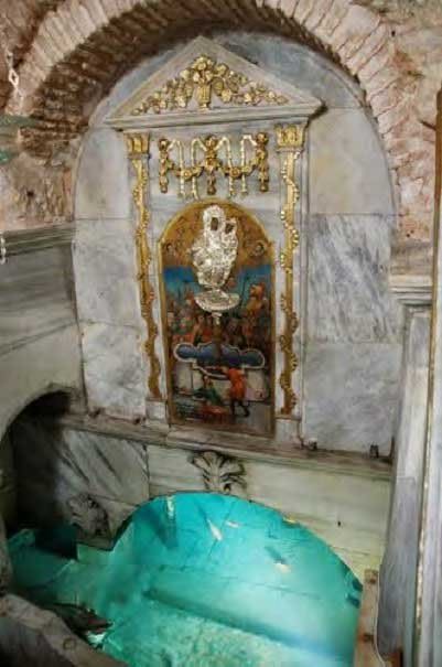 Η Ζωοδόχος Πηγή η κινητή εορτή της Παναγίας Θεοτόκου, που γιορτάζεται την Παρασκευή της Διακαινησίμου, της εβδομάδας δηλαδή μετά το Πάσχα, καθιερώθηκε στην αρχή μόνο στην Κωνσταντινούπολη σαν επέτειος των εγκαινίων του αγιάσματος και του ναού της Θεοτόκου που υπάρχει και σήμερα στην Ιερά Μονή του Μπαλουκλή (Μπαλουκλί-Βαλουκλή) η οποία βρισκόταν έξω από τα τείχη της Πόλης κοντά στην πύλη της Σηλύβριας σε μια δασώδη περιοχή γνωστή σαν «Παλάτια των Παγών» και στην οποία διέμεναν, την περίοδο της άνοιξης, οι βυζαντινοί αυτοκράτορες.