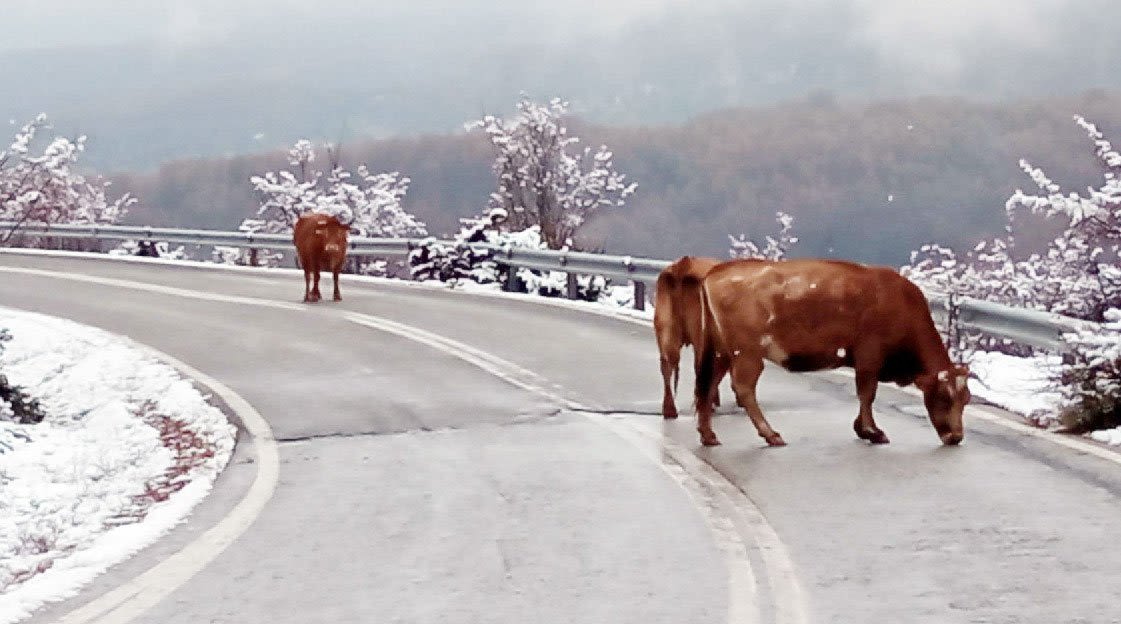 Στην περίπτωση όμως του δρόμου Βέροιας-Σελίου, στο ύψος της Κουμαριάς, ισχύει κυριολεκτικά αφού οι αγελάδες βγαίνουν στο οδόστρωμα και λόγω της νοστιμιάς του αλατιού που ρίχνουν τα εκχιονιστικά, γλείφουν τον δρόμο!!! Ας έχουν το νου τους οι κτηνοτρόφοι, ας αναπληρώνουν το αλάτι οι υπηρεσίες αφού γίνεται ανάρπαστο από τις αγελάδες, αλλά κυρίως οι οδηγοί να έχετε το νου σας και στο παγωμένο οδόστρωμα και στις αγελάδες!!!