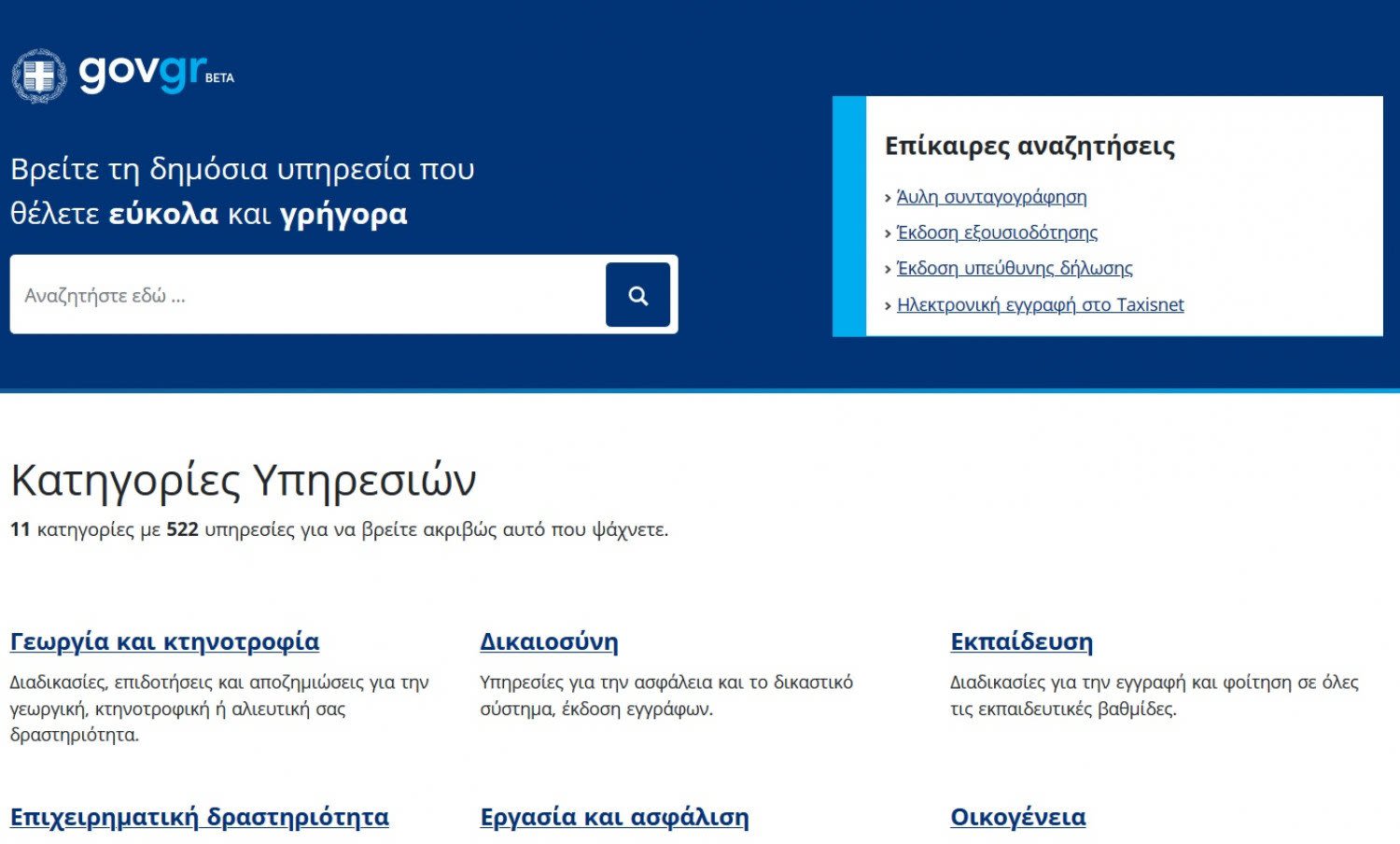 Μετά την επιτυχή ολοκλήρωση της διαδικασίας της προηγούμενης παραγράφου, ο χρήστης μεταφέρεται εκ νέου στο περιβάλλον της Ενιαίας Ψηφιακής Πύλης της Δημόσιας Διοίκησης.