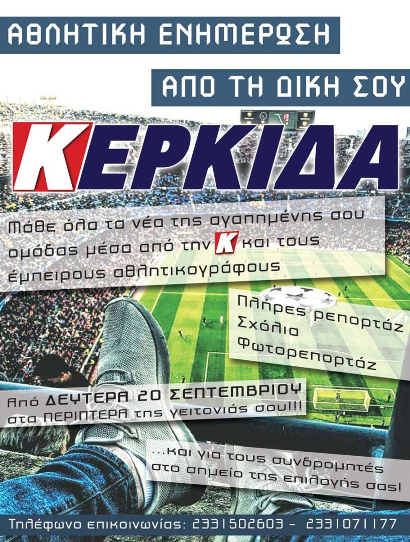 Η μοναδική αθλητική εφημερίδα της Ημαθίας, η αγαπημένη σας “ΚΕΡΚΙΔΑ”, επιστρέφει δριμύτερη μετά τις καλοκαιρινές διακοπές!