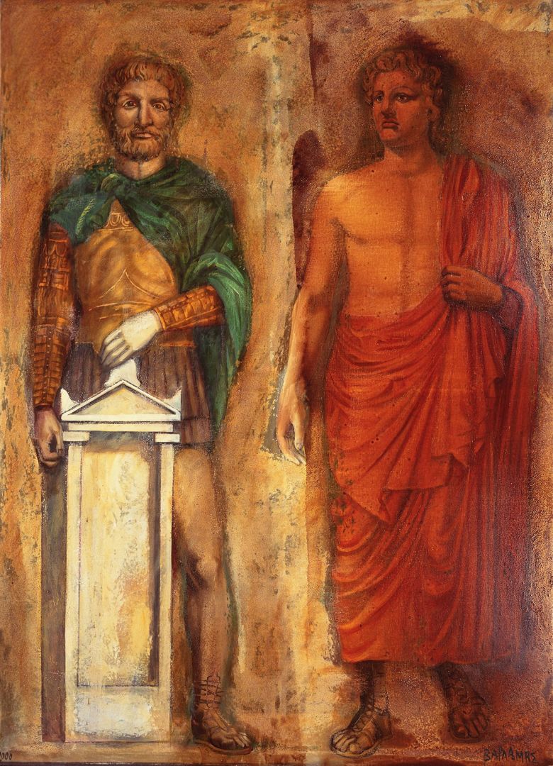Δυο ιστορικοί πίνακες μεγάλων διαστάσεων (180 Χ 130 εκ). Ο Μεγαλέξανδρος με την Ολυμπιάδα και με τον πατέρα του Φίλιππο.