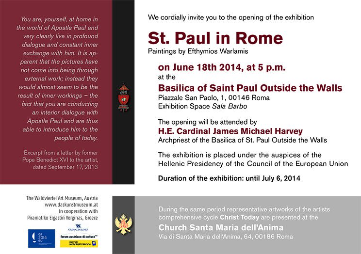 Η πρόσκληση από την έκθεση της συλλογής του Απ. Παύλου στην Ρώμη στην Βασιλική του Αγίου Παύλου (2014).