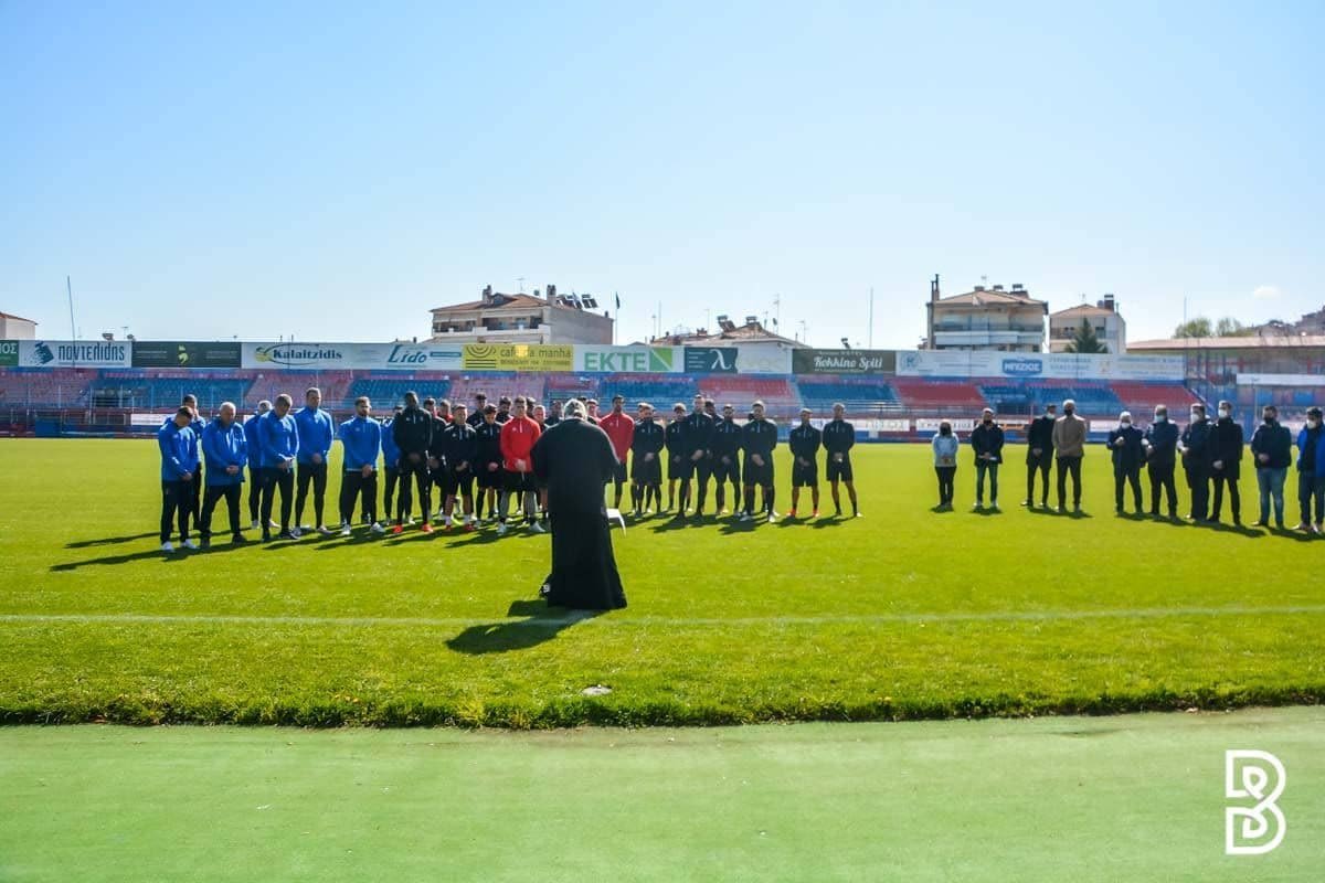 Τέλος, μετά τον αγιασμό ακολούθησε προπόνηση στο Δημοτικό Στάδιο. Από το Κυριακάτικο ματς θα λείψει ο Στέλιος Μαραγκός που είναι τιμωρημένος.