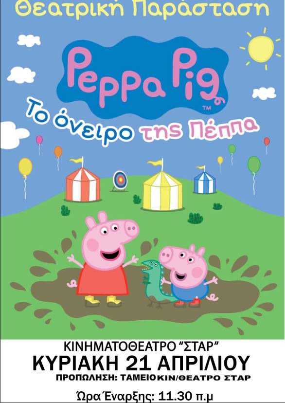 Εισιτήρια προπωλούνται: στο ΚΙΝΗΜΑΤΟΘΕΑΤΡΟ ΣΤΑΡ (τις ώρες λειτουργίας του), Τηλ. 2331022373,στα καταστήματα Wind , στα Seven Spot και ηλεκτρονικά στο https://www.viva.gr/tickets/theater/periodeia/to-oneiro-tis-peppa/