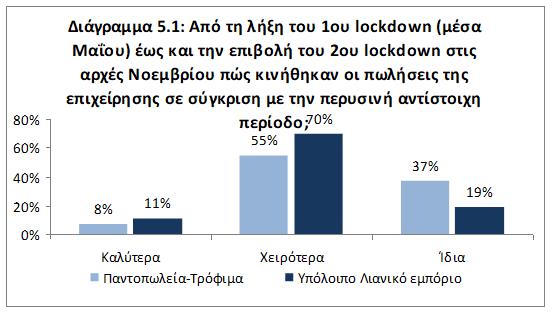 για τις επιχειρήσεις καθώς η πλειονότητα (65%) κατέγραψε χαμηλότερες πωλήσεις