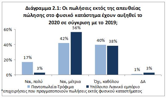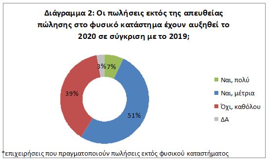 από τις δέκα (59%) επιχειρήσεις που έχουν τη δυνατότητα πώλησης εκτός φυσικού