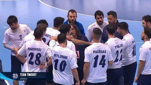 Η αμυντική λειτουργία της ομάδας δεν ήταν καλή για 20 λεπτά, αλλά αυτό στην συνέχεια διορθώθηκε και σε συνδυασμό με τις καλές επιλογές στην επίθεση, καταφέραμε να μείνουμε κοντά στο σκορ (15-12). Ο Χρήστος Μυλωνάς με 5 γκολ ήταν κορυφαίος της Εθνικής εκείνο το διάστημα, ενώ και ο αρχηγός Χάρης Μάλλιος είχε θετική παρουσία.