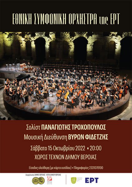 Στο πλαίσιο εορτασμού των Ελευθέριων του Δήμου Βέροιας η ΚΕΠΑ Δήμου Βέροιας και τα Μουσικά Σύνολα της ΕΡΤ παρουσιάζουν στο Χώρο Τεχνών για μια μοναδική συναυλία την Εθνική Συμφωνική Ορχήστρα της ΕΡΤ, υπό τη διεύθυνση του αρχιμουσικού Βύρωνα Φιδετζή. Η Ορχήστρα θα παρουσιάσει δύο σπουδαία έργα της ρομαντικής και νεορομαντικής περιόδου, από δύο διαφορετικά πρόσωπα του σλαβικού ταμπεραμέντου.